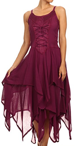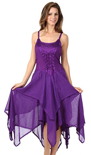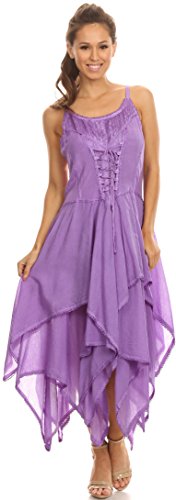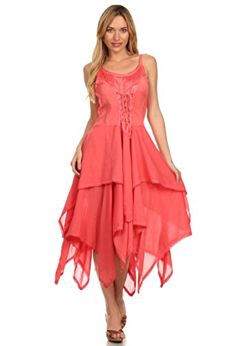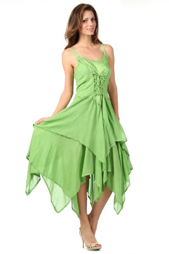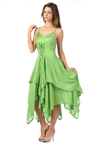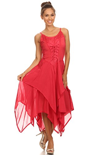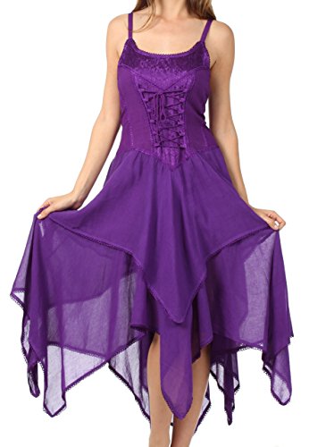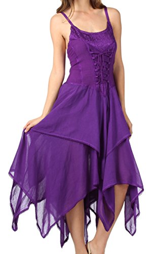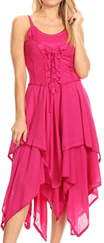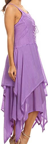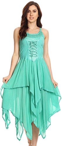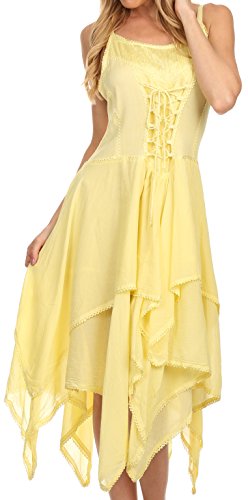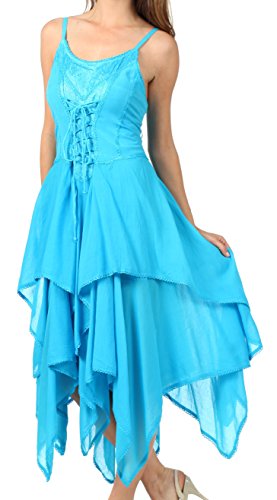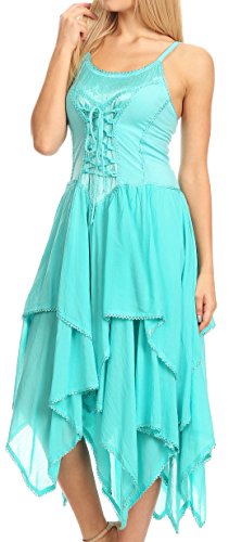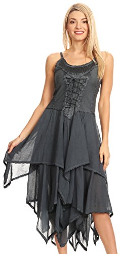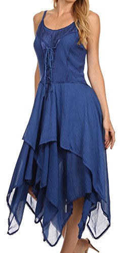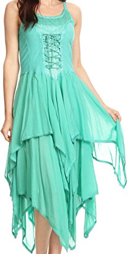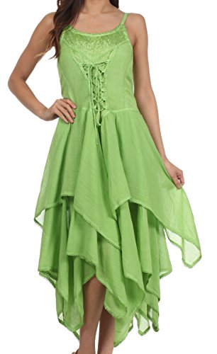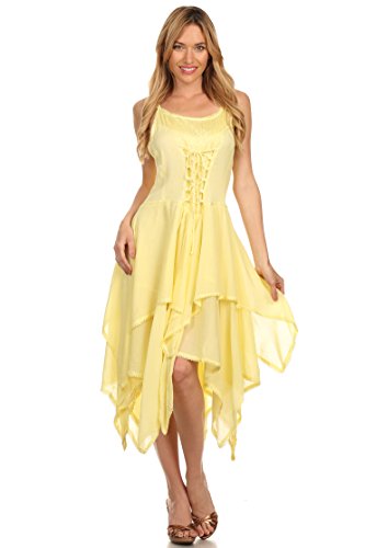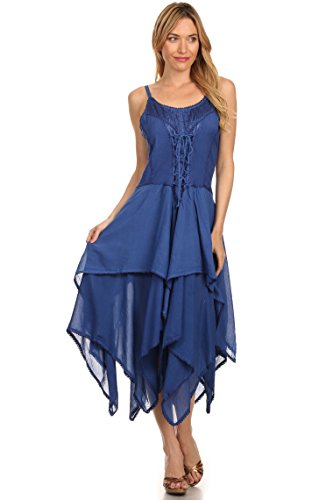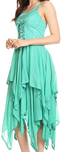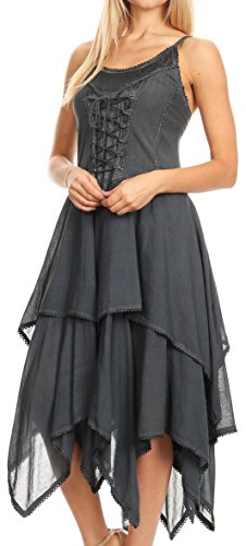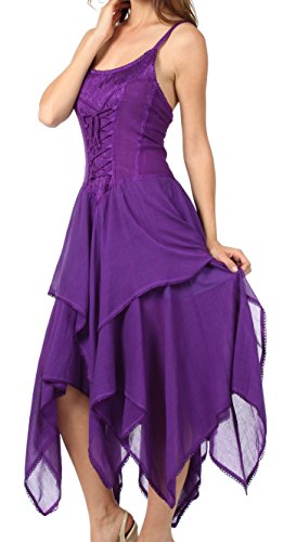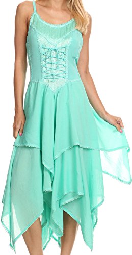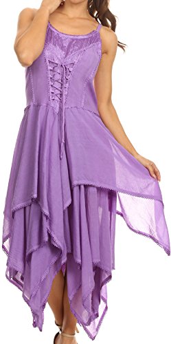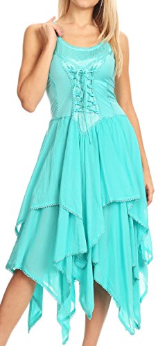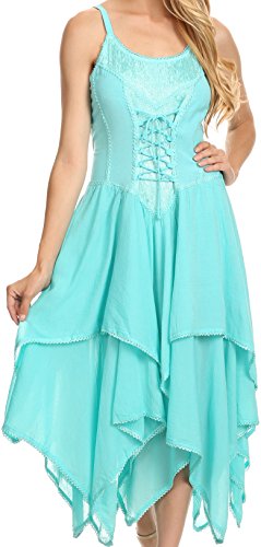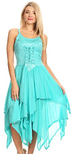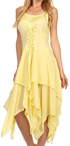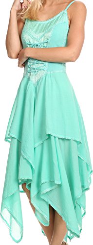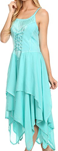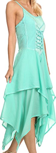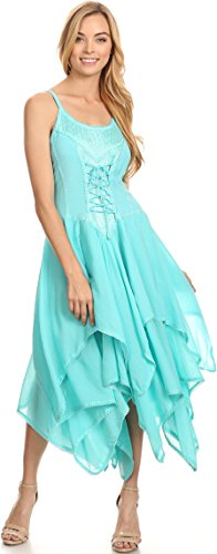 | Sakkas Lady Mary Jacquard Corset Style Bodice Lightweight Handkerchief Hem Dress |