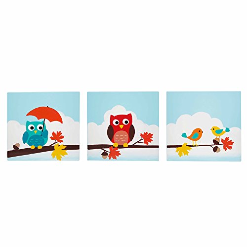 Cover your nursery with the ever so popular elegance of the owls in the Enchanted Woodland collection. Three piece wall art set is hand crafted and carved from canvas and beautiful murals decorate their edges with imaginative and inspirational characters from our collections.