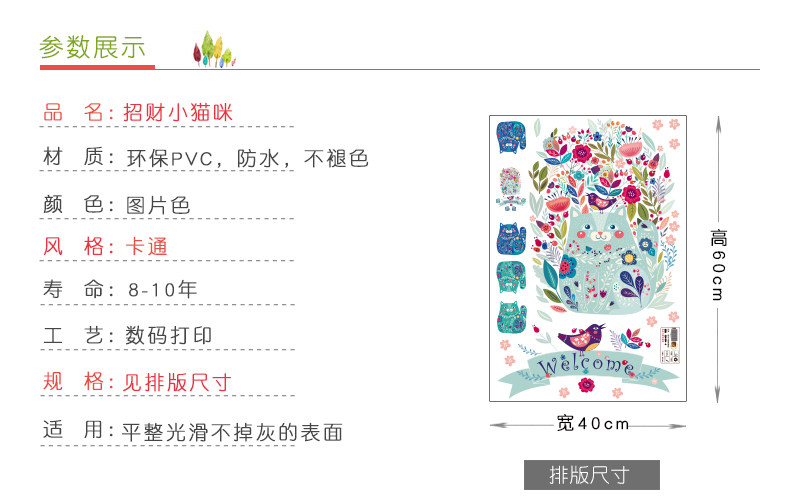 招财小猫咪电视背景墙装饰品卧室墙贴纸客厅背景墙贴纸装饰墙