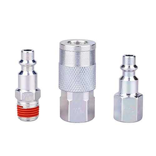 WYNNsky Air Coupler and Plug Kit, 1/4" NPT Air Fittings - 3 Piece Industrial Type Quick Connect with Storage Case