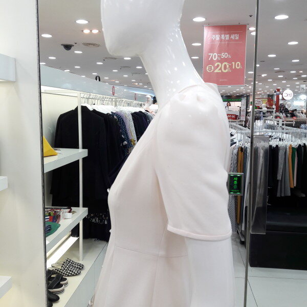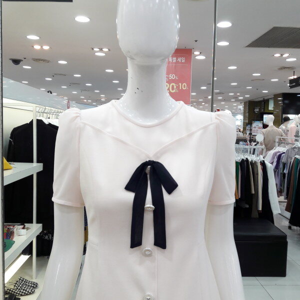 18년 여름 신상 가격인하된 네크라인과 소매 시스루의 우아한 원피스입니다 슬림한 허리라인과 깔끔한H라인으로 여성스러우면서 멋스러운 스타일입니다 하객룩 모임룩으로 추천합니다