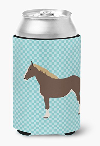 Caroline's Treasures BB8080CC Percheron Horse Blue Check Decorative, Can Hugger, Multicolor