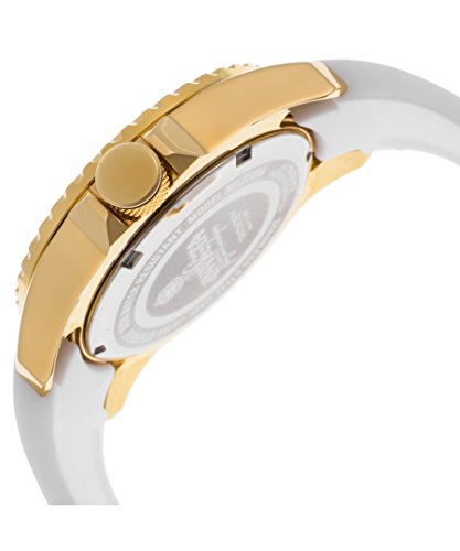 -. Binding : Watch -. Brand : Invicta -. Color : White/Silver -. Department : womens -. EAN : 0886678262601 -. Feature : Date window at 3:00p; 18k gold ion-plated stainless steel bezel encrusted with white crystals; flame fusion crystal / White mother of pearl dial with gold tone and white hands and gold tone and white crystal hour markers; luminous; crown with black rim; 18k gold ion-plated stainless steel case; white silicone strap / Quartz Movement / Case Diameter: 40mm / Water resistant to 100m (330ft): in general, suitable for swimming and snorkeling, but not diving -. Label : Invicta -. Manufacturer : Invicta -. Model : 21414 -. MPN : 21414 -. PackageQuantity : 1 -. PartNumber : 21414 -. ProductGroup : Watch -. ProductTypeName : WATCH -. Publisher : Invicta -. Studio : Invicta -. Title : Invicta Women's 'Wildflower' Quartz Stainless Steel and Silicone Casual Watch, Color:White (Model: 21414) -. UPC : 886678262601
