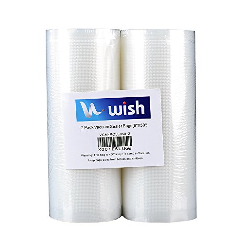 Vacuum Sealer Bag(2-Pack), WISH 8”X50’ Heavy Duty Embossed Food Storage Saver Bag Rolls(100 Feet Total)