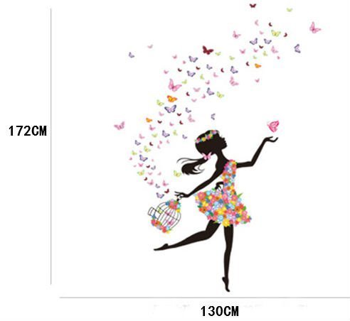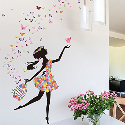 SWORNA Nature Series SN-66 Lovely Dancing Flower Girl with Birds Cage Removable Vinyl DIY Wall Art Mural Sticker Decal Decor for Bedroom/Living Room/Playroom/Store/Home/HallwayKindergarten 68"H X 51"W