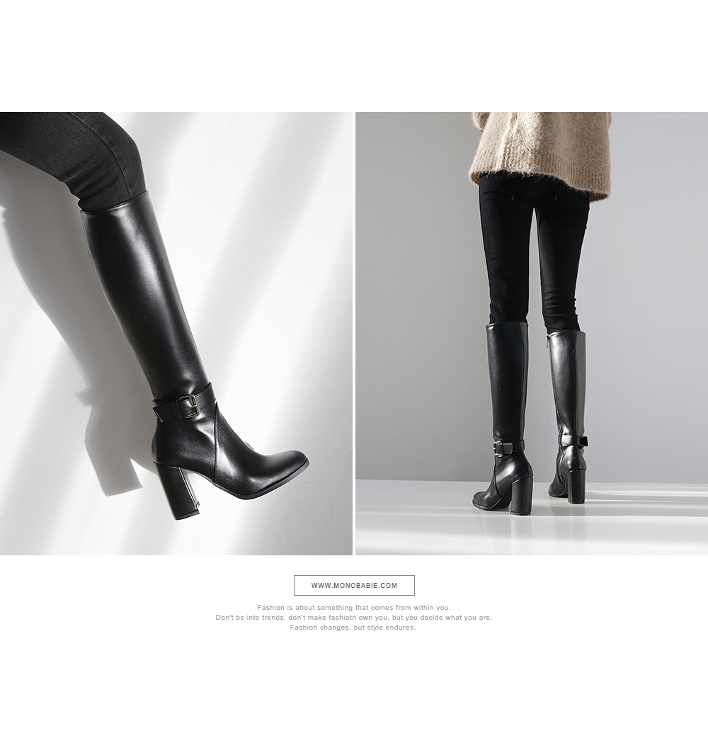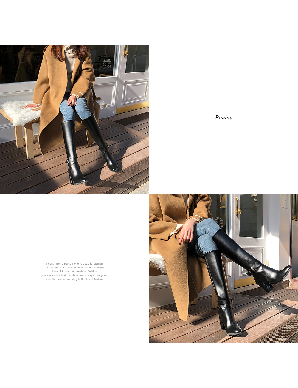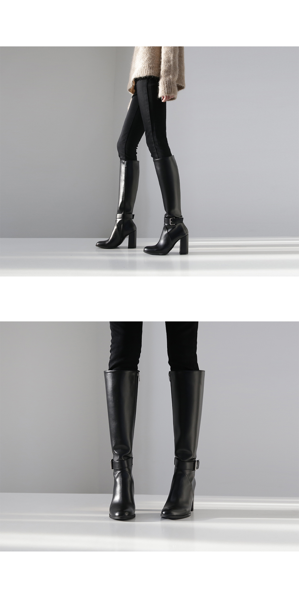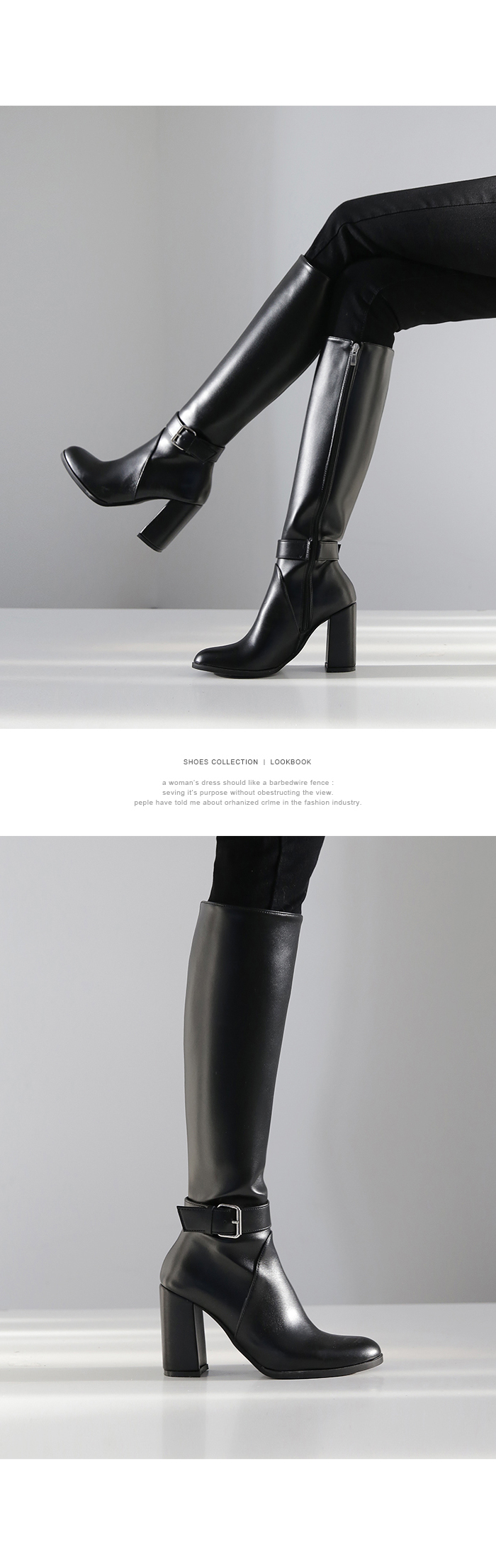 EDITOR'S NOTES Belt detail chunky heel long boots.