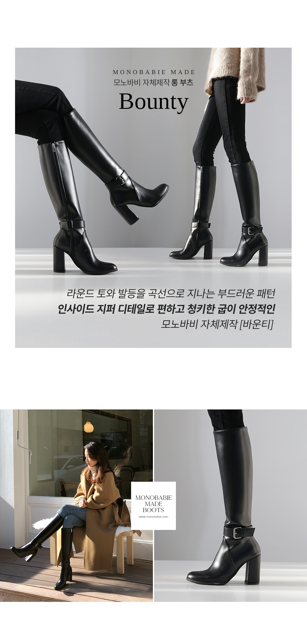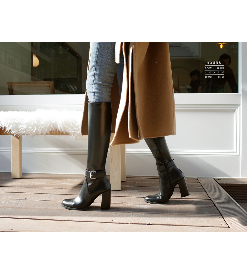딱 적당한 굽높이로 과장됨 없이 분위기와 비율을 살려 주는 느낌입니다. 신었을 때 끼임없이 나른하게 느껴지는 라스트로 발 모양에 상관없이 편하게 신으실 수 있는 제품입니다. 타이트하게 핏되는 스판부츠보다는 더욱 고급스러운 느낌이며, 어떠한 디테일도 없는 깨끗한 데일리 부츠보다는 조금 더 여성스럽고 시크한 느낌을 가미하여 스타일링에 따라 매니쉬하거나 페미닌한 느낌으로 연출 가능한 디자인입니다.