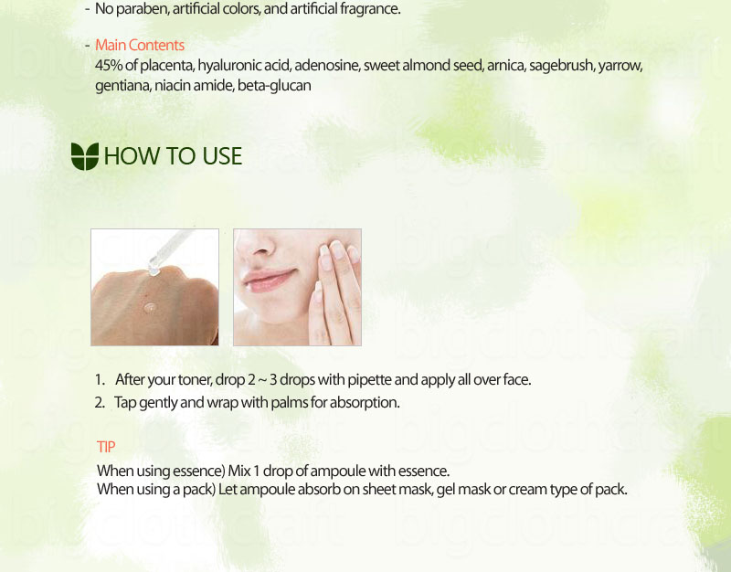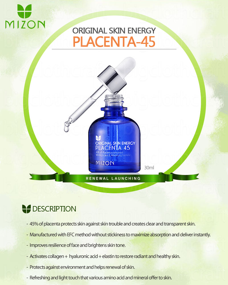 - 45%of placenta protects skin against skin trouble and creates clear and transparent skin.