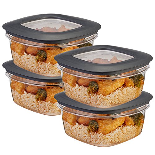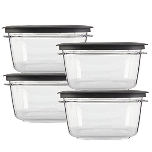 - (1) 8pc Rubbermaid Premier 5-Cup Food Storage Container Set (4 Lids, 4 Bases), Model 1961987, Clear With Gray Lids, New