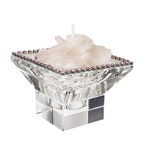 5th Avenue Collection Italian Crystal Candle Holder with Rose Candle, Scented - with Pink Crystals