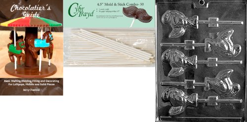 Cybrtrayd 'Medium Turkey Lolly' Thanksgiving Chocolate Candy Mold with 50 4.5-Inch Lollipop Sticks and Chocolatier's Guide