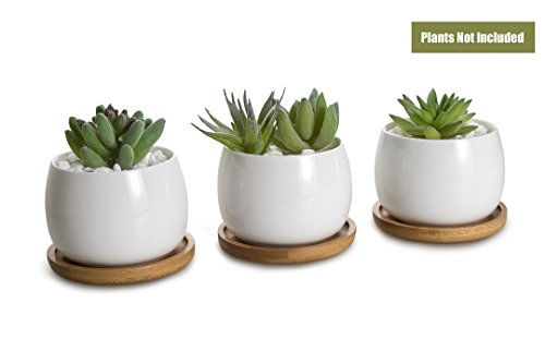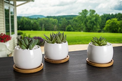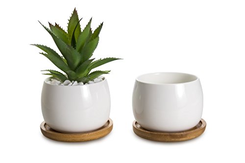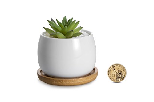 Opps OPPS White Ceramic Cute Succulent Cactus Plant Pot With Bamboo Tray