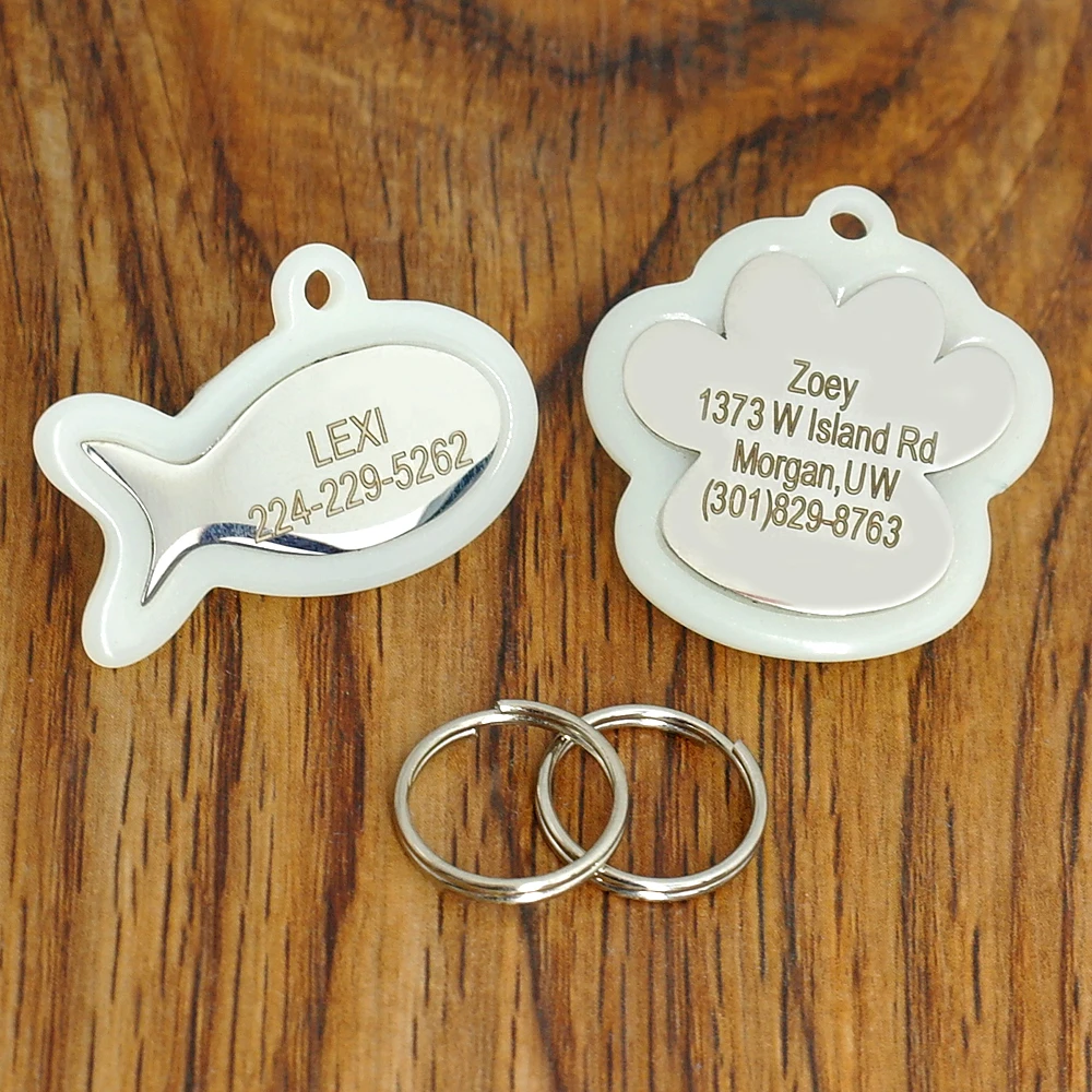 Type:Dogs Type:ID Tags Feature:Reflective,Personalized,Bells Material:Stainless Steel Brand Name:PET ARTIST Season:All Seasons Pattern:Solid Feature:Fluorescence Type:Pet ID Tag Shape:Paw , Fish Feature:Fluorescence Gift:Engraving service + free bell
