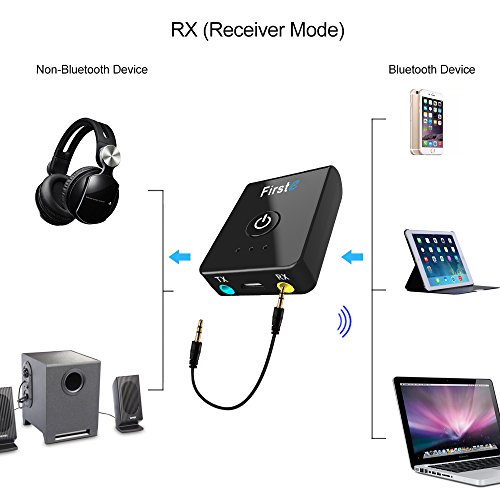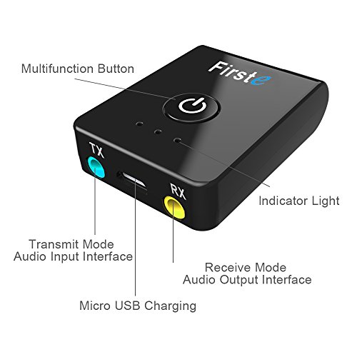 Dual STREAM & MULTIPOINTt: When working as a Bluetooth transmitter, FirstE tx90 can be paired to two Bluetooth Headphones or speakers,and streams audio to both of them simultaneously. Working as a Bluetooth receiver, it can still be paired to two of your smart phones or tablets.