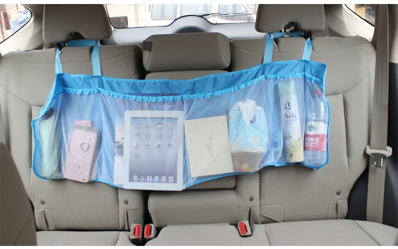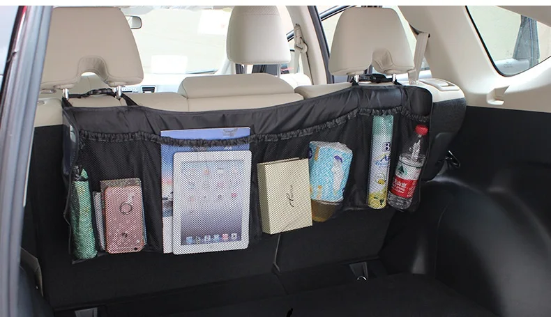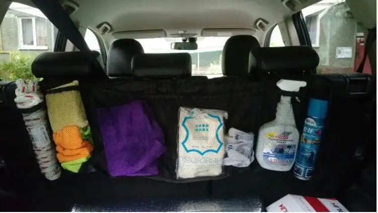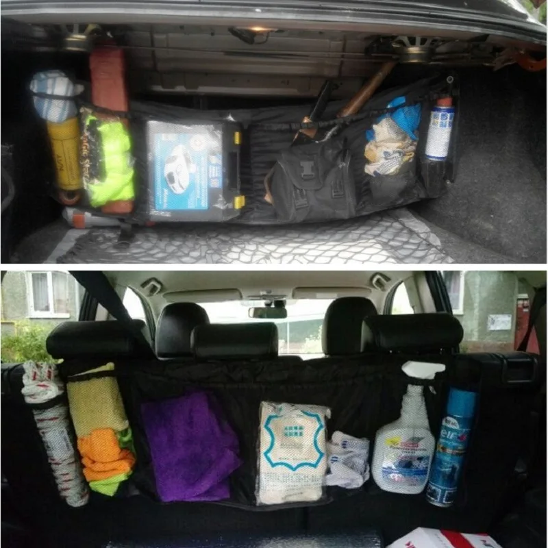 Useful of mesh in the trunk:storage of cosmetics food drink bottle mobile phone car tools