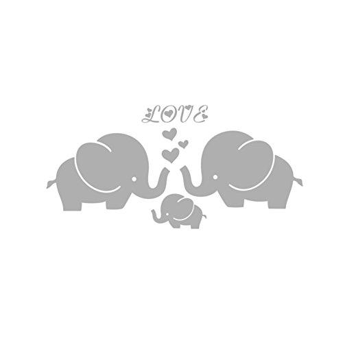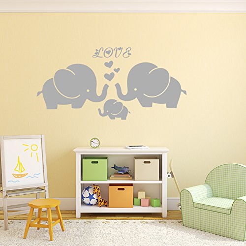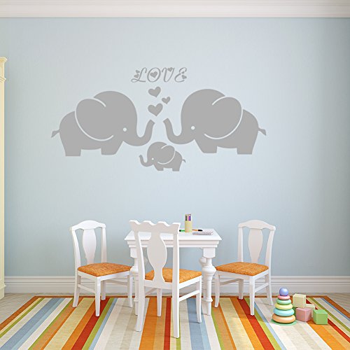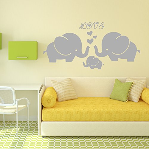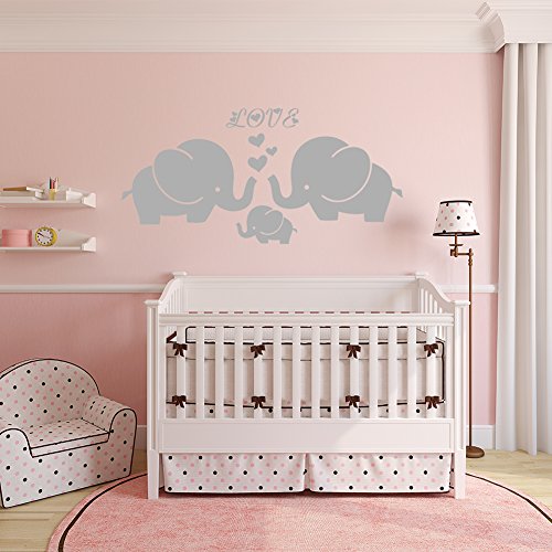 Large Cute Elephant Family With Hearts Wall Decals Baby Nursery Decor Kids Room Wall Stickers, (Large)40''W x19''H, Grey