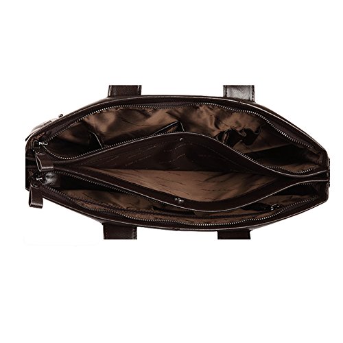 - Feature : Outer Material: cowhide leather / Dimension 38W x 28.5 H x9D CM Weight: 1.3 kg / Natural gorgeous cowhide leather, double strong carry handles , a long removable and adjustable shoulder strap, high quality hardware, tidy and neat stitch , classic design, all make this bag a perfect briefcase. / The bag is delicately designed, the high quality cowhide leather also makes it look much higher end. The interior is well organized and nicely lined with durable fabric. Inside there are two main zipped compartments separated by a sandwich bag in middle, additionally, there is a hidden zipped pocket for important belongings, two open pockets for wallet and mobile phone and two pen holders. / This stylish bag may be a good choice as a briefcase, a work bag or a laptop case. The durable quality is excellent and the classic style is timeless, it promises all value for every penny you spend.