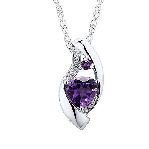 Stunning Pendant in Rhodium Plated 10k White Gold features a 6MM Trillion (triangular) shaped Amethyst in an artistic modern setting. There are 10 round diamond accents and 1 round 2MM Amethyst accent. The combination of the purple amethysts and white gold is classic. The diamonds are HI Color, I2-I3 Clarity, .04 cttw. Diamonds are set against White Rhodium Plating. Pendant comes with an 18" Rope Style 10k Rose Gold Chain. The natural amethysts have been heat-treated to permanently improve color. We recommend cleaning with warm soapy water and a soft cloth. This necklace is also available in 10k Rose Gold.Feature