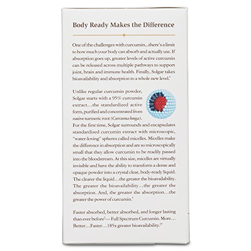 One of the challenges with curcumin. there’s a limit to how much your body can absorb and actually use. If absorption goes up, greater levels of active curcumin can be released across multiple pathways to support joint, brain and immune health. Finally, Solgar takes bioavailability and absorption to a whole new level