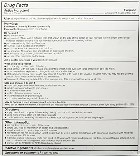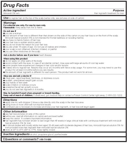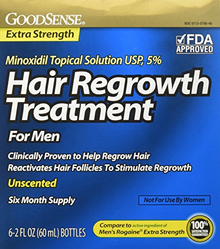 Good Sense minoxidil topical solution USP 5% hair regrowth treatment for men helps to regrow hair on the top of the scalp (vertex only, see pictures on side of carton). Compare to the active ingredient of men's rogaine extra strength. See product images above for full product information.Feature