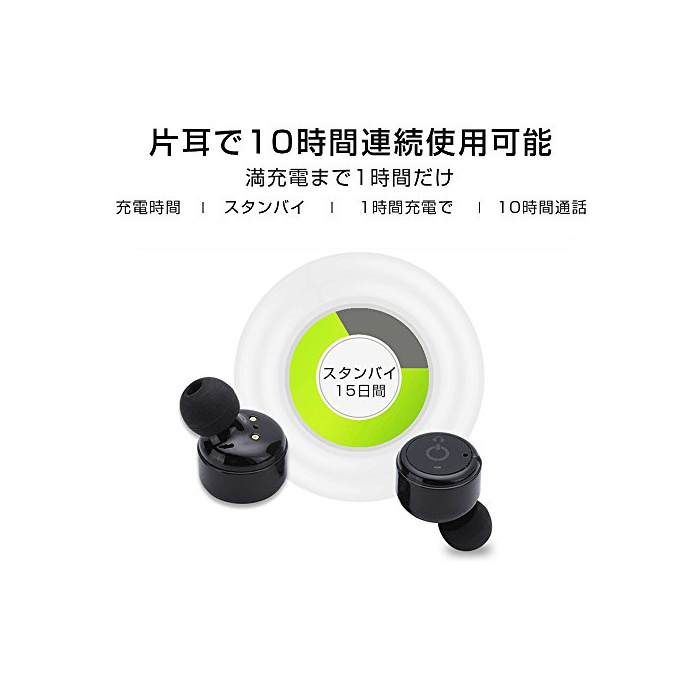 ● 포터블 충전 케이스 첨부 와 이어폰 본체의 내장85mAh배터리에 의해1회의 풀 충전으로 최대8시간의 통화/ 6시간의 음악 재생이 가능.게다가운반에 편리한 충전 케이스도 붙어 있고, 충전 케이스1500mAh의 배터리 용량은,이어폰에 약8회 충전으로 옵니다.여행이나,아웃도어 시에서도 충분히,wireless 음악 재생을 즐기는 것 를 할 수 있습니다.