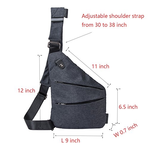 -. Feature : ★External Size: 9 * 0.7 * 12 Inches (L * W * H), Adjustable shoulder strap from 30 to 38 inch.Weight: only 0.5 lb(0.23kg)。 / ★High quality polyester fabric.Form Fitting Design Sling Bag- Ultra lightweight comfortable anti theft sling shoulder backpack bag, is prefect for business, outdoor sports (hiking, camping, climbing, cycling, bike riding etc) driving, outings, traveling, working, school, dating, shopping in casual daily life / ★Functional structure: iPad built-in large-capacity pocket, mobile phone pocket relative. External magnetic buttons pocket and front pocket for everyday needs / ★Metal zipper strip, metal buckle and excellent sewing make the bag more durable. Shoulder Strap can be adjusted according to your height / ★No More Tangle Earphone Cables- Night reflective belt on the shoulder chest bag strap also can be used to fix the earphone, avoid tangle cables