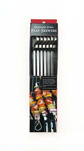 - Flat skewer design helps to prevent food from spinning while on the grill and will accommodate larger cuts of meat or vegetables
