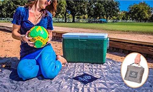 QUILTED MONKEY MAT Portable Indoor/Outdoor 5'x5' Cushioned, Waterproof Blanket with Corner Weights in Compact Pouch for Beach, Picnic, Baby,...