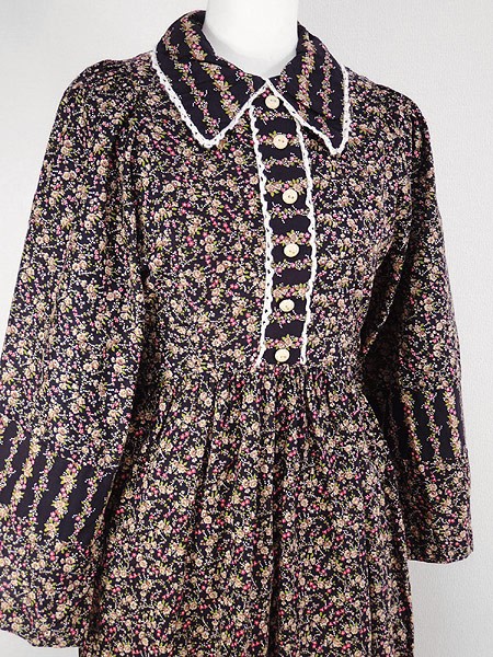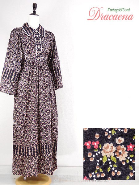 1970〜80年代頃のロング丈長袖シャツワンピ。