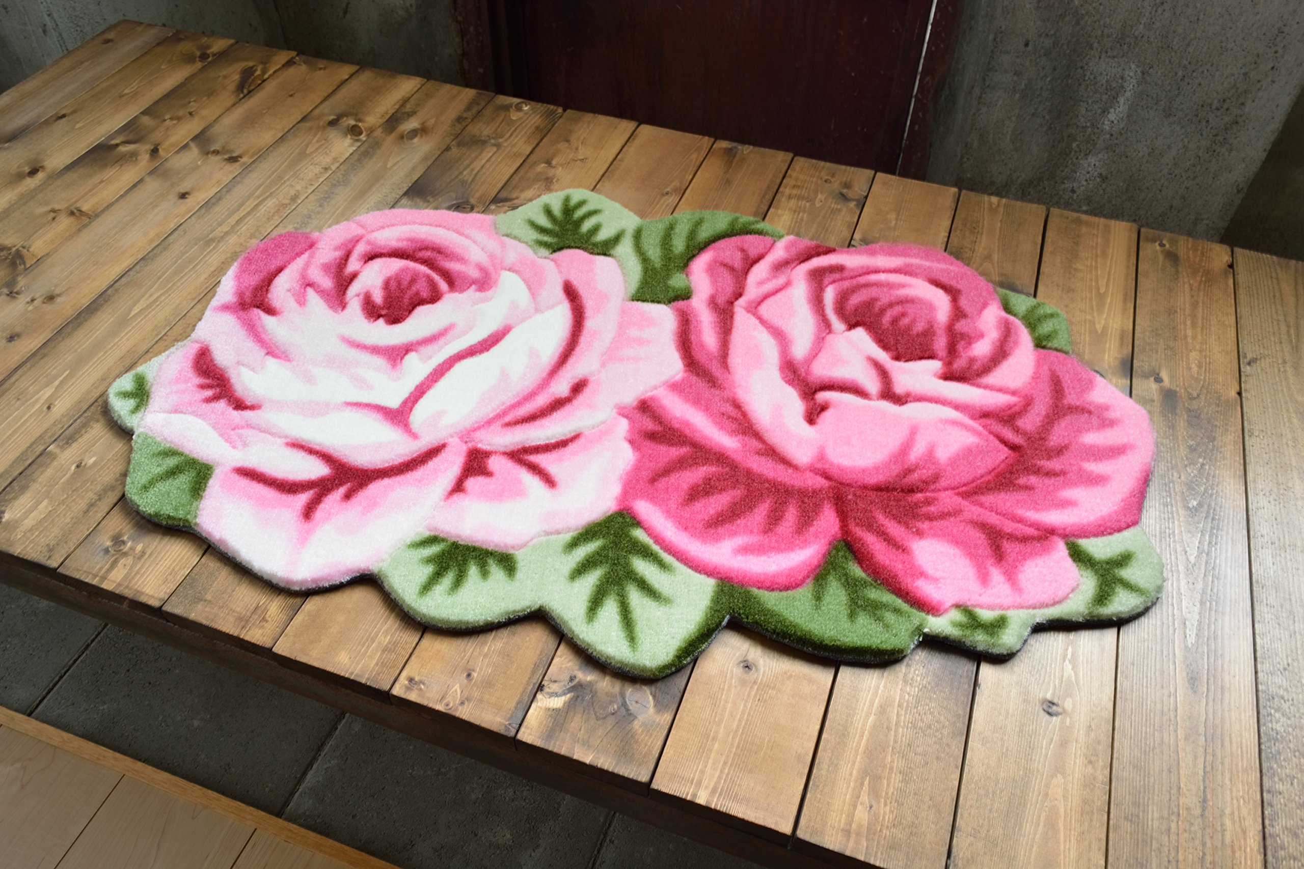 Accented carving entrance mat with luxurious rose design.