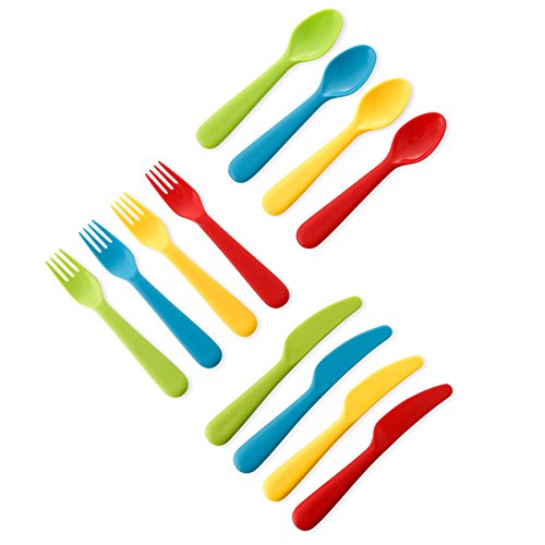 -. Feature : ★QUALITY - This 24-piece set includes: 4 Knives, 4 Spoons and 4 Forks all Made out of strong non-toxic BPA free material, that is DISHWASHER, FREEZER, & MICROWAVE SAFE. / ★USEFUL - This set is a necessity for meals at home, preschools, daycare, and in school lunch box, Great for training toddlers to eat independently with this safe silverware set. / ★DESIGN - The starter knives cut food easily yet won't cut little fingers, and cereal-friendly spoons hold liquid well. Kids can spear food easily with forks that feature extra-sturdy prongs. / ★VIBRANT - This bright kids kitchenware set will transform family meals from dull to delightful! Kids will love the 4 vibrant colors and solid feel of these plastic tableware, every child their own color / ★SAFE - These reusable unbreakable eating ware are a safe, healthy & exciting alternative to disposable or stainless steel dishes! Fits perfectly in children hands