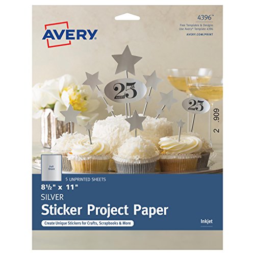 Avery Silver Full-Sheet Sticker Project Paper, 8-1/2 x 11”, 5 Sheets (4396)