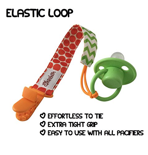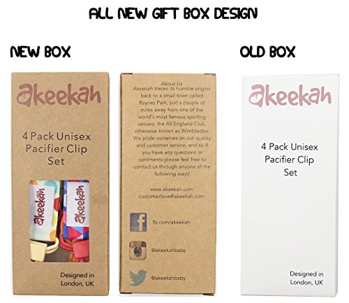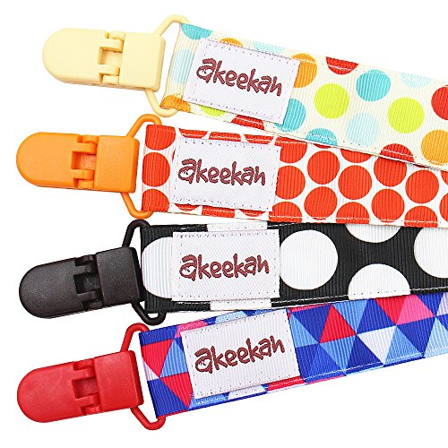 -. Feature : AWESOME DESIGNS: Our pacifier clips are double sided meaning you are effectively getting 8 different designs! We have chosen our patterns very carefully- other packs tend to have either random patterns on each clip, or the exact same pattern in different colors. We have combined the two, so that on one side you have zigzags/chevron in various colours, and on the other side you have a different dazzling design on each clip! / MULTI FUNCTIONAL: Not only are our ribbons unisex, but they are also made with an elastic loop so they can be easily tied round everything from all shapes of pacifiers made with all different materials, to teething toys. Our pacifier holders also come in a custom designed gift box, making them an excellent baby shower gift! / SAFETY AND EASE: We use BPA free plastic clips rather than metal clips which prevents damage to clothes, as well as preventing your baby from chewing on potentially toxic metal. It also means that the clips a lot easier for the parent to use, and harder for the child to remove due to the butterfly mechanism, allowing for one handed use. Our binky clips are fully machine washable and are Phthalate, Lead, Nickel and Latex Free! / INCREDIBLE QUALITY: We use high quality grosgrain ribbon, made from 100% polyester rather than cotton, which prevents damage in the washing machine. These high quality materials also show the full richness of the colors maximizing style and stimulation of the baby's brain! The high quality stitching, elastic loop and plastic clip creates ultra high strength and prevents the leash from breaking. / CUSTOMER SERVICE: Customer satisfaction means the world to us at Akeekah- we are on hand 24/7 to answer your queries, and we always do our absolute best to ensure you are happy with the product! However if not, you can return it with no questions asked for a full refund. Furthermore, we provide a 90 day warranty!