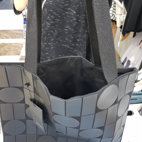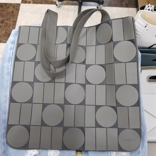 적당한 크기의 숄더백으로 도형 무늬가 세련미를 줍니다.블랙,그레이폴리우레탄 100%사이즈39cm×38cm