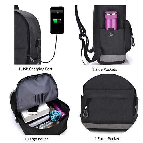 -. Title : Laptop Backpack Rucksack School Bookbag with USB Charging Port for College Travel Hiking, Black