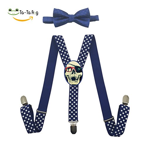 (Sans Bendy's Suspenders)/Accessories/Suspenders Cummerbunds/DIRECT FROM USA/Custom Pirate Skull Y-Back Clip Suspender with Bowtie Set Adjustable for Kids