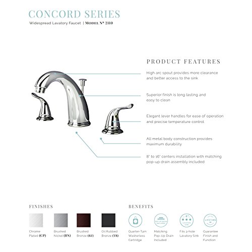 Builders Shoppe 2110BN Two Handle Widespread Lavatory Faucet with Pop-Up Drain Brushed Nickel Finish