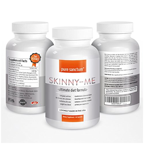 -. Binding : Health and Beauty -. Brand : pure sanctum -. EAN : 0755899991082 -. Feature : WEIGHT LOSS PILLS THAT WORK OR YOUR MONEY BACK - Get your beach ready body. Skinny me has ALL you need in a Diet Pill: appetite suppressant, fat burner, metabolism booster / SHED FAT, SAVE MONEY: save $100's each month on the cost of buying Raspberry Ketones, Garcinia Cambogia, African Mango, Green Coffee, , Green Tea, Glucomannan individually / RESEARCH BACKED: Clinically proven top weight loss pills in a potent formula with higher bio-availability to convert stored fat into fuel, inhibit Fat and Carb absorption, turbo-charge your metabolism, release energy without spikes or jitters / PURE, SAFE, HEALTHY and TRUSTED, no artificial fillers. Skinny me has a high level of repeat customers. See our 5* reviews about how others lose belly fat and achieve healthy slimming / Whether you follow a Paleo diet like Atkins or the Dukan diet, the DASH Diet, the MIND Diet, the TLC Diet, Weight Watchers, the HMR Weight Loss Plan, the Jenny Craig Diet, the Raw Food Diet or the 20/20 Diet by Phil McGraw, Skinny me is the best diet pill that works fast for women and men -. IsAdultProduct : 0 -. Label : pure sanctum -. LegalDisclaimer : Please consult your doctor if in any doubt about whether this product is suitable for your needs -. Manufacturer : pure sanctum -. ProductGroup : Health and Beauty -. ProductTypeName : HEALTH_PERSONAL_CARE -. Publisher : pure sanctum -. Studio : pure sanctum -. Title : Weight Loss Pills - Garcinia Cambogia, Green Coffee, Raspberry Ketones, Green Tea, African Mango, Glucomannan - Clinically Proven Diet Blend - No Jitters - Best Natural Appetite Suppressant -. UPC : 755899991082