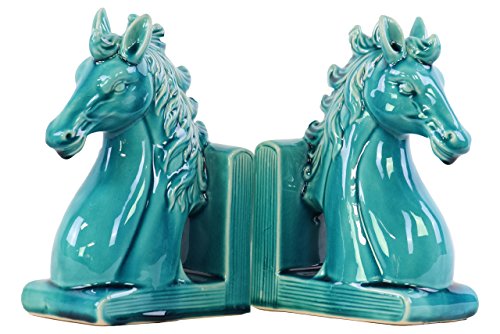 Urban Trends Ceramic Horse Head on Base Bookend (Set of 2), Gloss Turquoise
