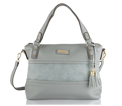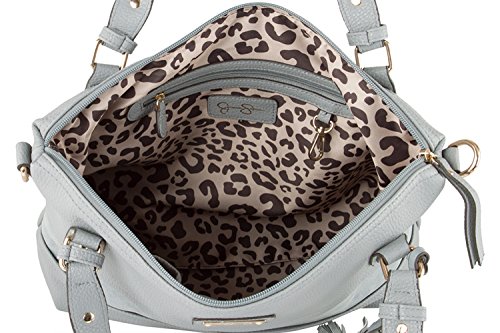 Right on Trend, Feminine and fashion-forward, The Jessica Simpson Vesey Satchel Features Paneled Mixed Media PVC Exterior, Signature logo, and zipper Closure, Fully Lined Interior features 2 Slip and 1 zip pocket. With bohemian touches and a comfortable, commodious interior, you get plenty of room and ravishing style.