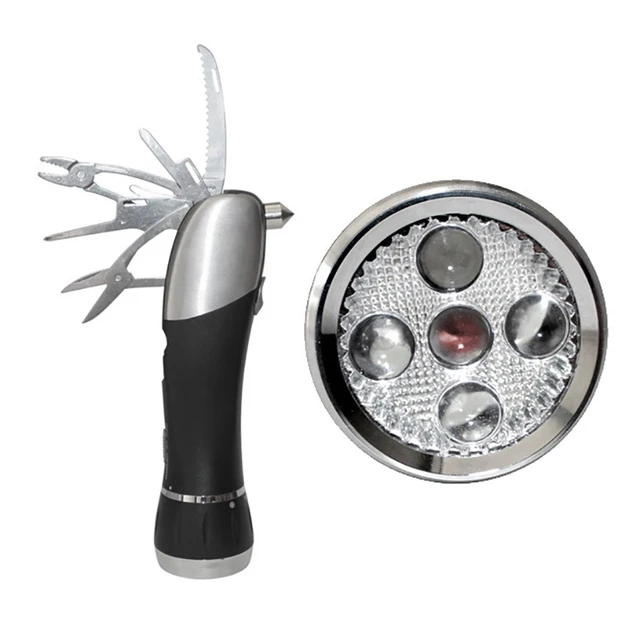 | [해외] 다기능 LED 손전등 토치 램프 스테인레스 스틸 칼 비상 망치 및 램프 캠핑 사냥 하이킹 |