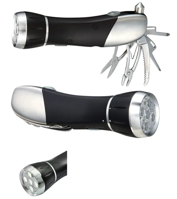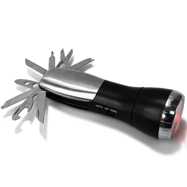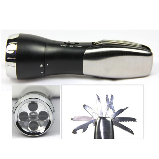 상품 내용 특징, 1. 네 고휘도 LED 손전등, 레드 경고 플래시 자꾸 강조. 2. 부분 쉘 금속 스테인레스 스틸. 3. 가위, 파일, 드라이버, 십자 드라이버, 오프너 맥주, 사이즈 너트 렌치, 날카로운 칼, 좀 데이터, 힘든 큰 데이터, 네일 드라이버. 4. 3*7 # AAA 배터리 (). 5. 자전거, 등반, 캠핑 및 야외 활동 등 제품 설명 1. 그물 무게 135 그램 2. 크기, 14*4.5*4.5 센치메터 3. 전원,(포함하지) 4.재질: ABS + 스테인레스 스틸