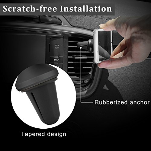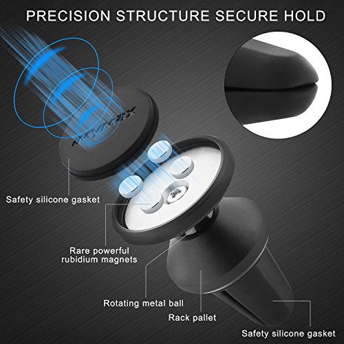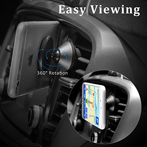 EASY TO USE: This air vent magnetic car mount is cradle-less and attached to the base by an adjustable ball socket which allows 360° rotation. Easy to install and easy to move (one-hand operation)and within easy reach of your arm, allowing you to concentrate on the road with minimal distraction.
