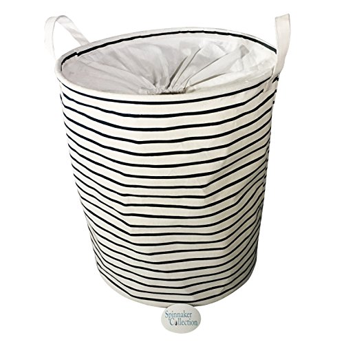 Canvas Drawstring-Top Storage Bin with Dark Blue Stripes - Spinnaker Collection
