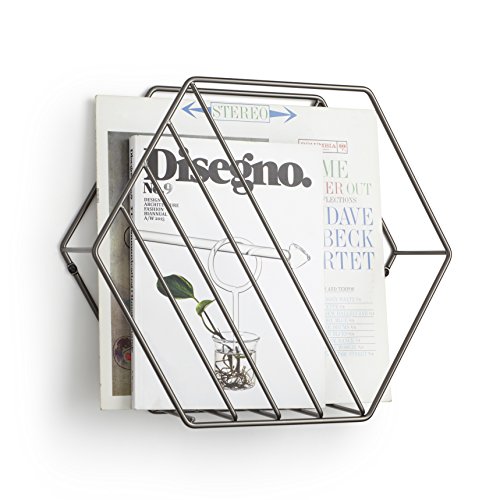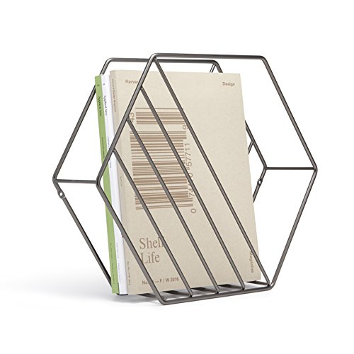 Studio : Umbra Publisher : Umbra Binding : Kitchen Product Description A thoughtful approach to organization, this architectural magazine rack creates visual interest in any space. The simplicity of the hexagon structure is offset by crossed lines to create an attractive transparency. Rest on the floor or mount on the wall to keep your magazines, papers, or files neatly stowed away. 0