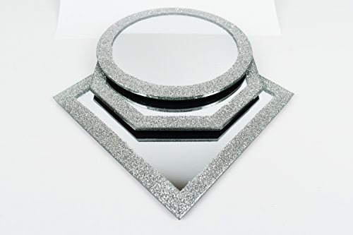 Set of 3 - 5" Holiday Glitter Trim Mirror Candle Plates! Christmas Candle Plate Perfect for Decoration and Holiday Scenes! (3, Silver)