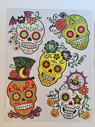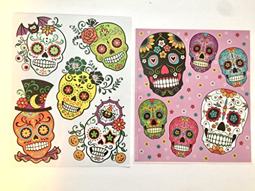 Set of 2 Day of the Dead ~ Halloween ~ Painted Skulls Window or Door Decals