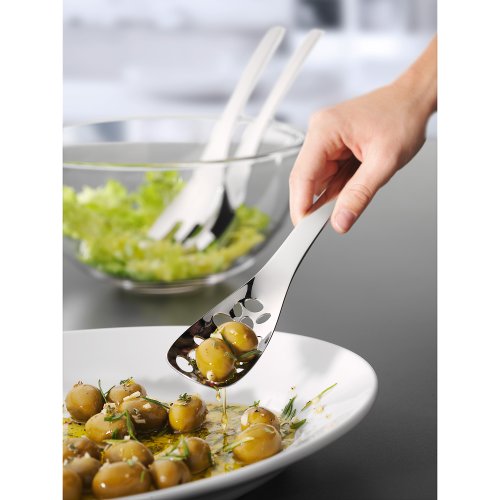 Studio : WMF Publisher : WMF Binding : Kitchen Product Description This pierced server will look beautiful on your table whether it's being used or not. Made of highly polished stainless steel, this piece brings another level of elegant design to the table top or buffet. It's pierced design allows for juices to flow back into the serving bowl, but the pierced bowl of the spoon is big enough to allow it to serve a generous portion. The flat polished handle design will blend with existing flatware easily. This comes as a single piece and is one of many items available in the Vela pattern. 0