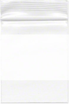 BAG SIZE/STYLE: 2.5" wide x 3" high, below the zipper (63mm x 76mm), features white write-on block