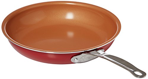 GOTHAM STEEL 10.25" Kitchen and Cookware, About the Product - Gotham Steel is the first product of its class to actually utilize high-grade titanium and ceramic as surface finishing. This sophisticated combination not only ensures maximal durability it also allows for multi-functional, all-around usage. Titanium plus Ceramic Coating FAQs High-heat threshold to sear perfectly browned steaks! Everything just slides right off, even burnt chocolate and cheese. Food flavor is not altered when cooking tomato-based or any acidic food products thanks to the ceramic component! The non-stick surface cleans easy!.Feature
